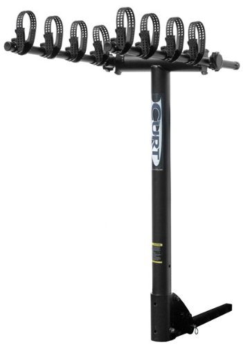 Standard Series Bike Rack w/ 1 1/4" & 2" MountsSupported by durable 2 1/2 tube frameHeavy gauge bars fold down and out of the way when not in useAdjustable hold-downs adapt to many bike frame sizesHolds 4 BikesMax Load 140Outback Hold DownsM
